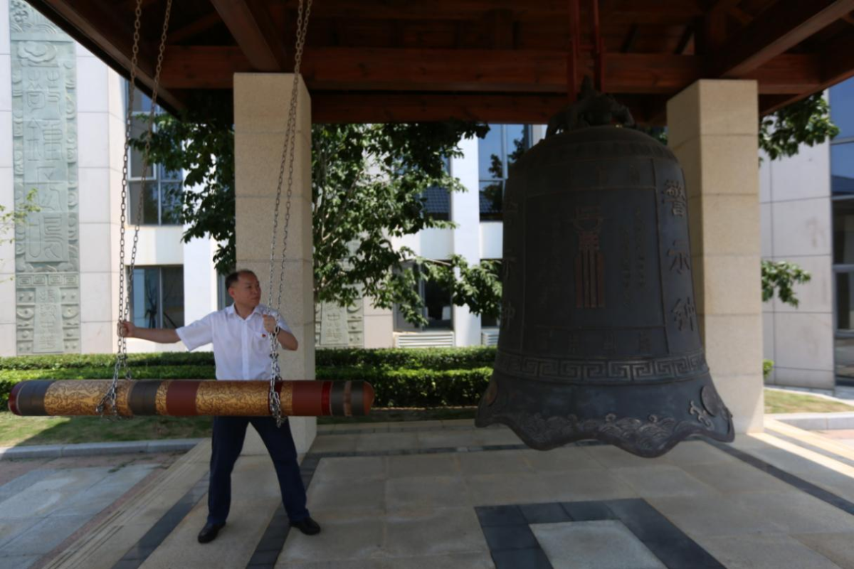 在廉政文化廣場(chǎng),黨員干部面向警示鐘莊嚴(yán)肅立,黨支部書(shū)記、總經(jīng)理王峰敲響了“警示鐘”,三記振聾發(fā)聵的鐘鳴警示同志們要時(shí)刻把穩(wěn)思想之舵,緊繃紀(jì)律之弦。